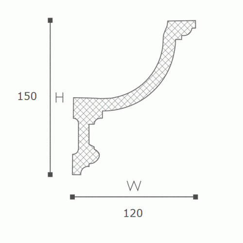 Перекрытие по стене: 150 мм Перекрытие по потолку: 120 мм Длина планки: 2 м