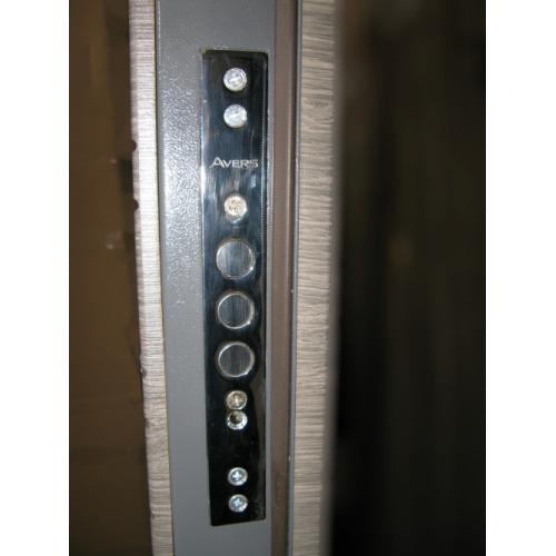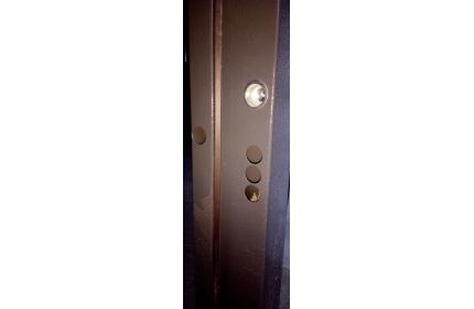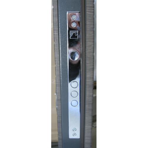 Фурнитура: 2 наружные петли на скрытых подшипниках, глазок, ручка на розетте, броненакладки.