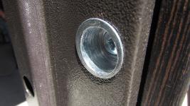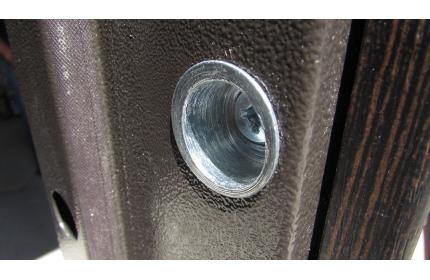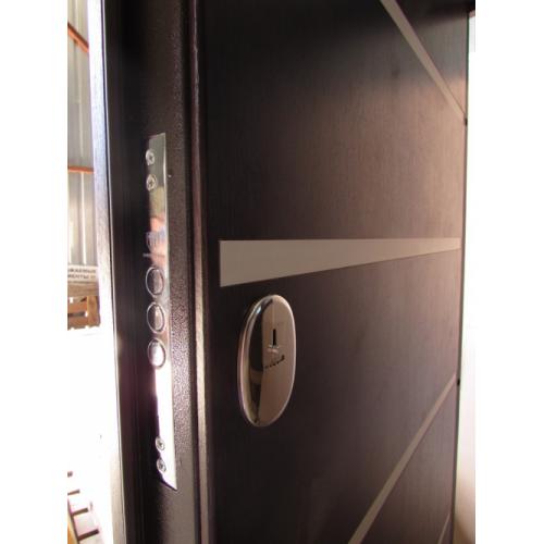 Фурнитура: 2 наружные петли на скрытых подшипниках, глазок, ручка на розетте, броненакладки.