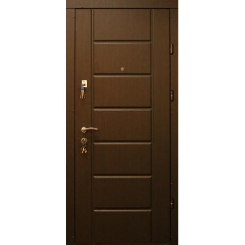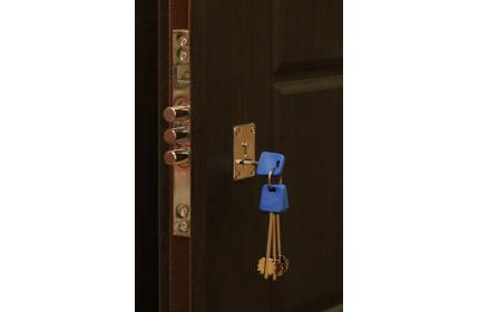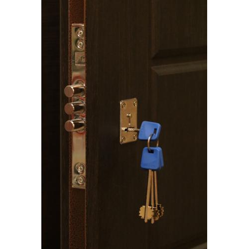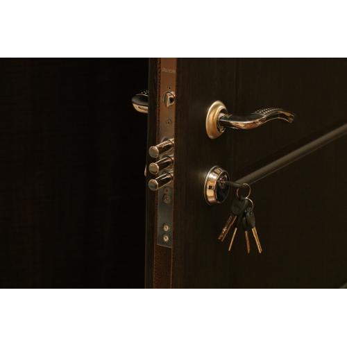 Фурнитура: 3 наружные петли на подшипниках, глазок, ручка на розетте,  броненакладки. Ответные планки