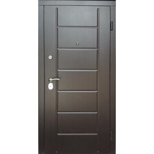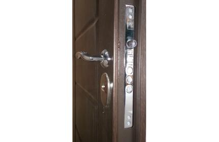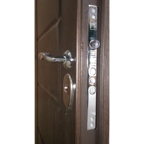 Фурнитура: 2 наружные петли на скрытых подшипниках, глазок, ручка на розетте, броненакладки.