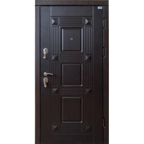 Фурнитура: ручка на розетке, утопленная броненакладка, наружные петли (3 шт.), глазок, антисрезы (3 шт.)