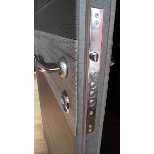Фурнитура: 3 наружные петли, глазок, ручка на розетте, утопленные броненакладки, Евроуплотнитель ECO-KS